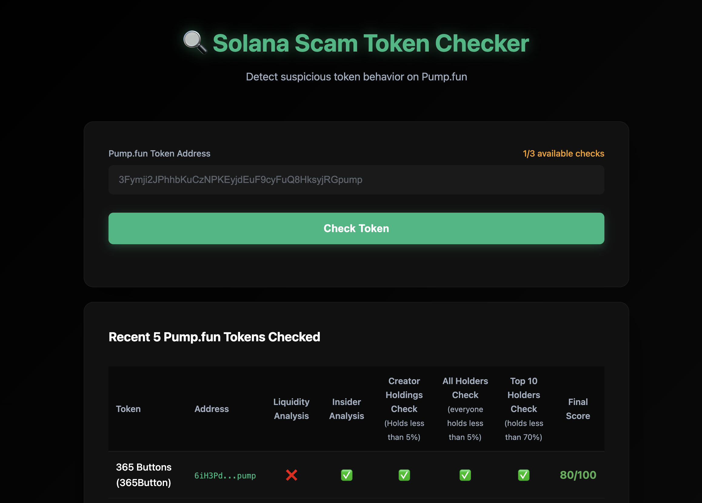 - Token Age: The tool works best with tokens created recently (bonding curve detection may fail for very old tokens)