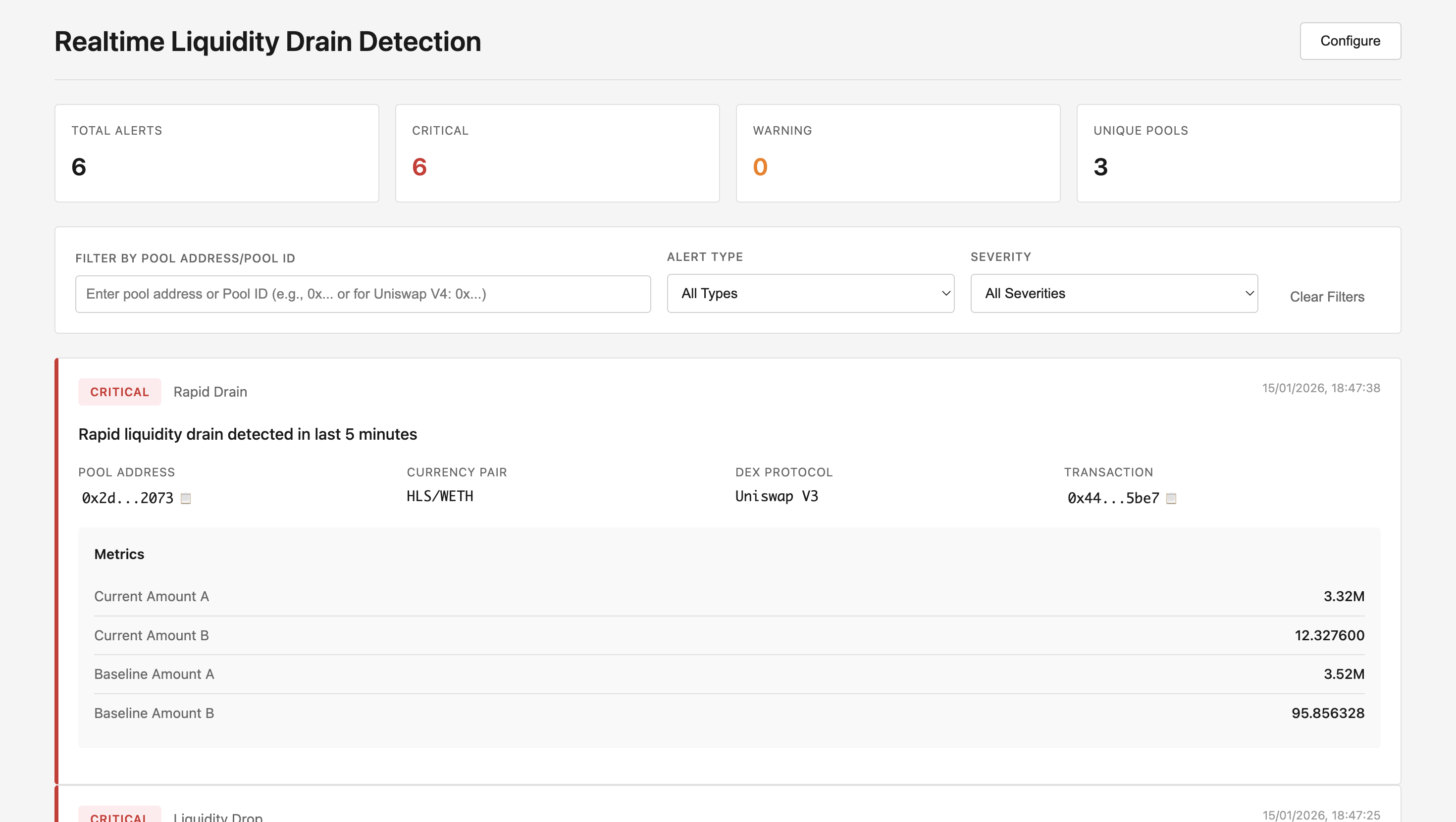 This tool is provided as a proof of concept and should be considered a starting point for building your own liquidity monitoring solution. The detection logic may generate false positives due to legitimate large trades, normal liquidity rebalancing, temporary market fluctuations, or legitimate protocol operations.
